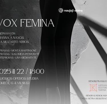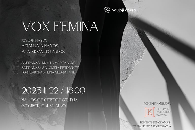 Jau 2025 m. rudenį Naujoji Opera pristatys net penkias skirtingas mono operas neįprastose Vilniaus edrdvėse.
